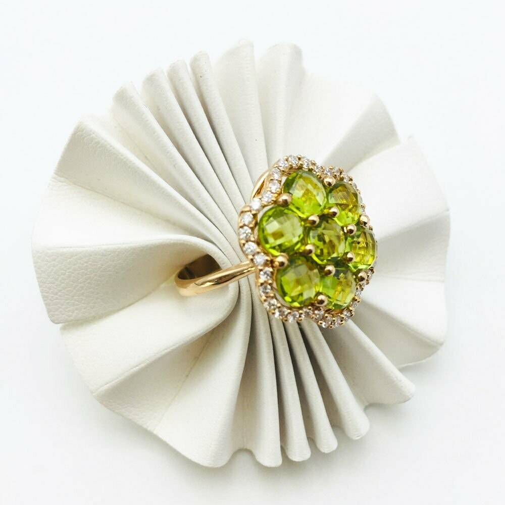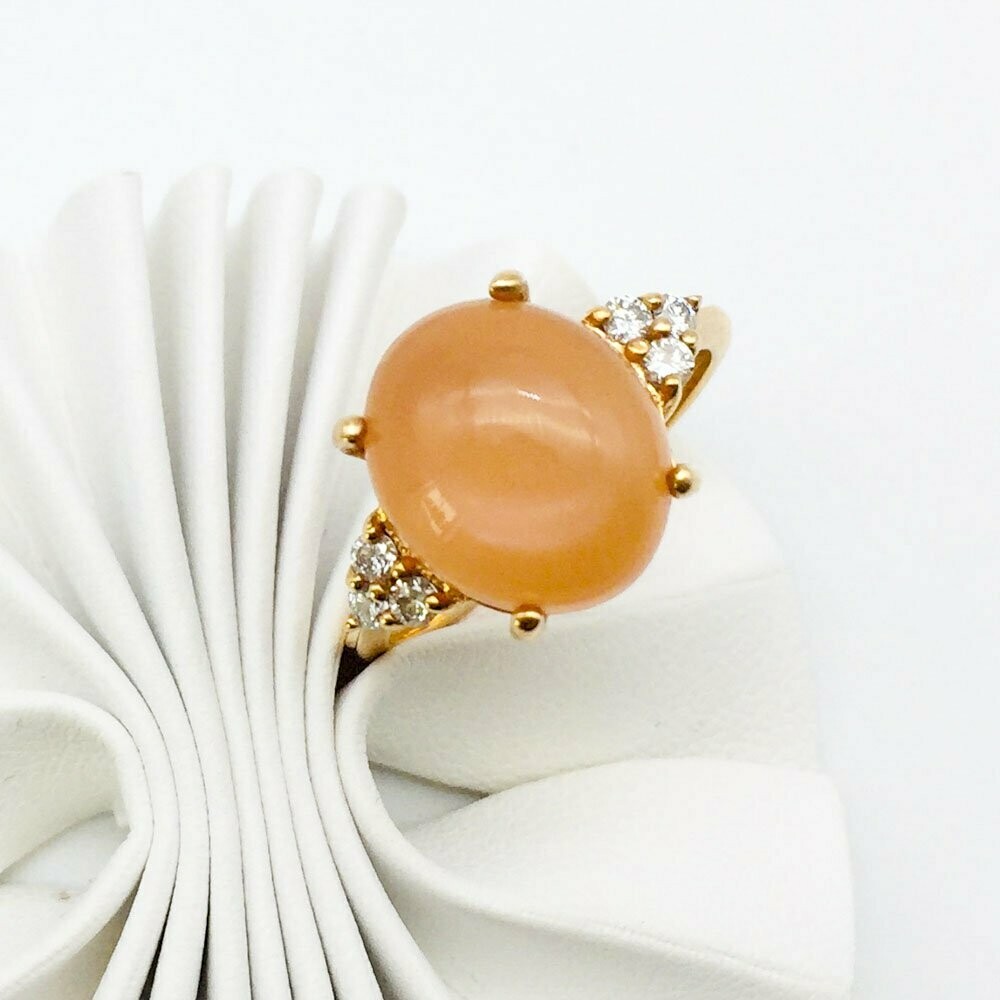Damenring gefertigt aus 18 Karat Rosegold Mondstein 2,20 ct Cabochon 6 Brillanten 012 ct Tw Vs *Die Mondsteine gibt es in Farbe: bläulich, grau oder orange wie Foto.