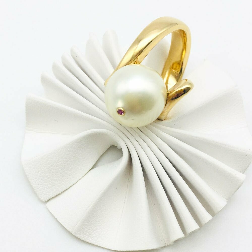 Ring: Südseeperle 12 mm feinsten Lüster mit pink Saphir gefasst in eine Zage Größe 55 am Lager, * Anlass: Geburtsstein des Monats Juni