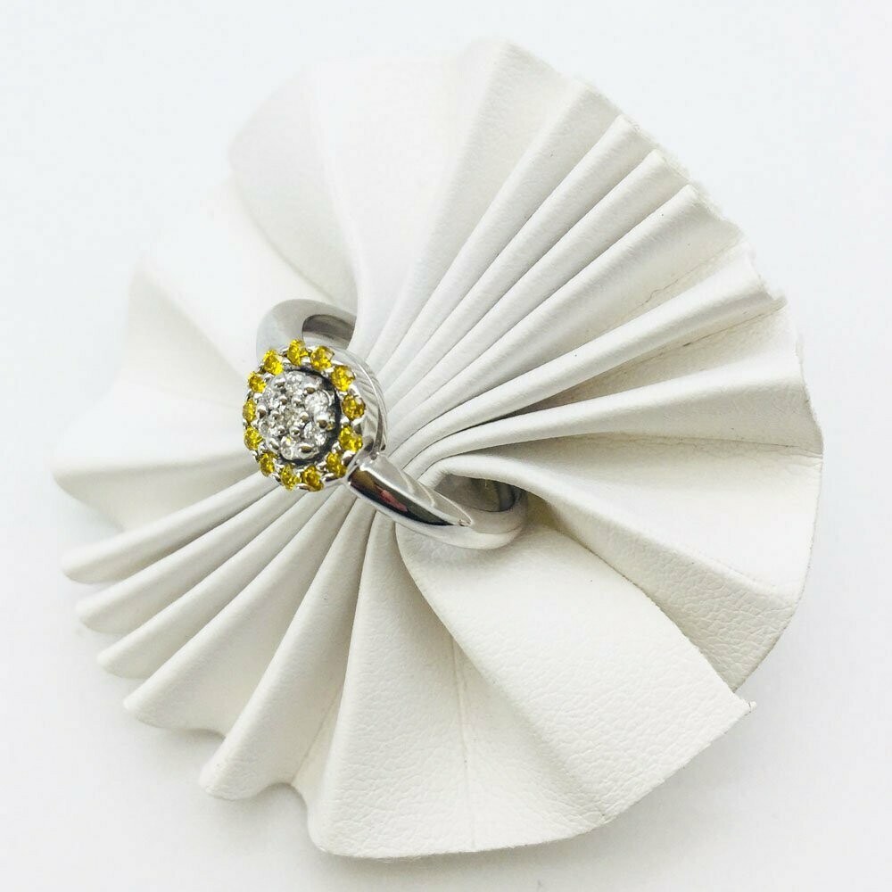 Damenring gefertigt aus 18 Karat Weißgold Brillanten 0,11 ct Tw Vs fancy Brillanten 0,19 ct In Größe 54 am Lager, ansonsten können wir alle Grössen anfertigen, auf Wunsch.